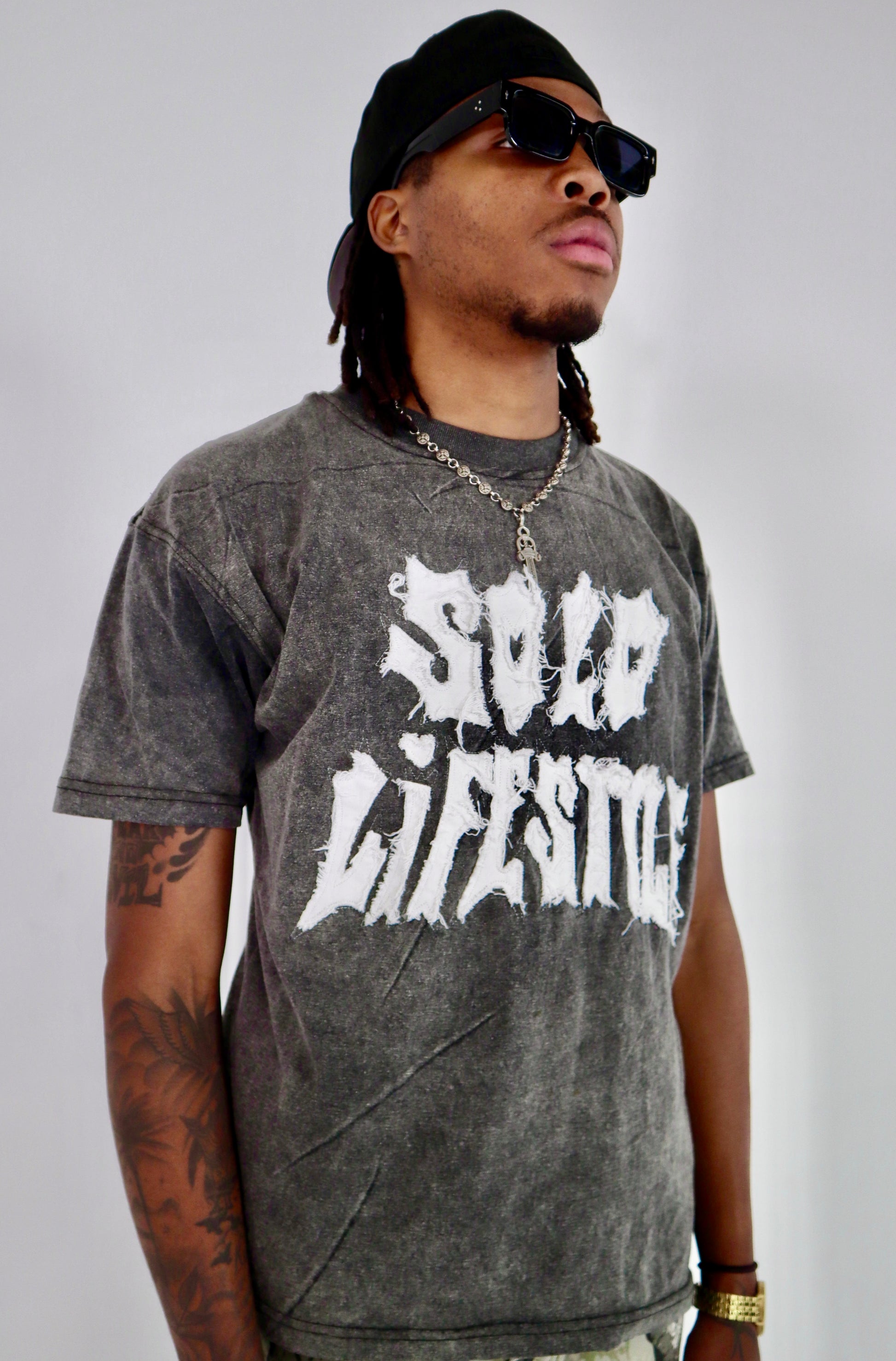 SOLO LIFESTYLE "Alone, Not Lonely" 002 Ash Grey distressed premium T-Shirt. Designed for the modern streetwear lover, this versatile piece is perfect for effortless and stylish outfits. With its easy-to-match design, you can easily mix and match to create endless looks. Make a statement with Solo lifestyle.